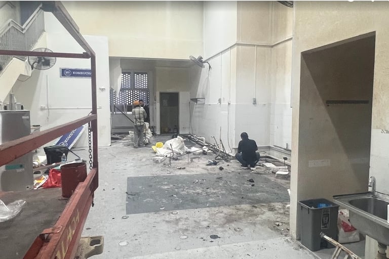 This includes the removal of partitions, flooring, ceiling, electrical, plumbing works, painting and any other modifications or alterations that were made to the space.